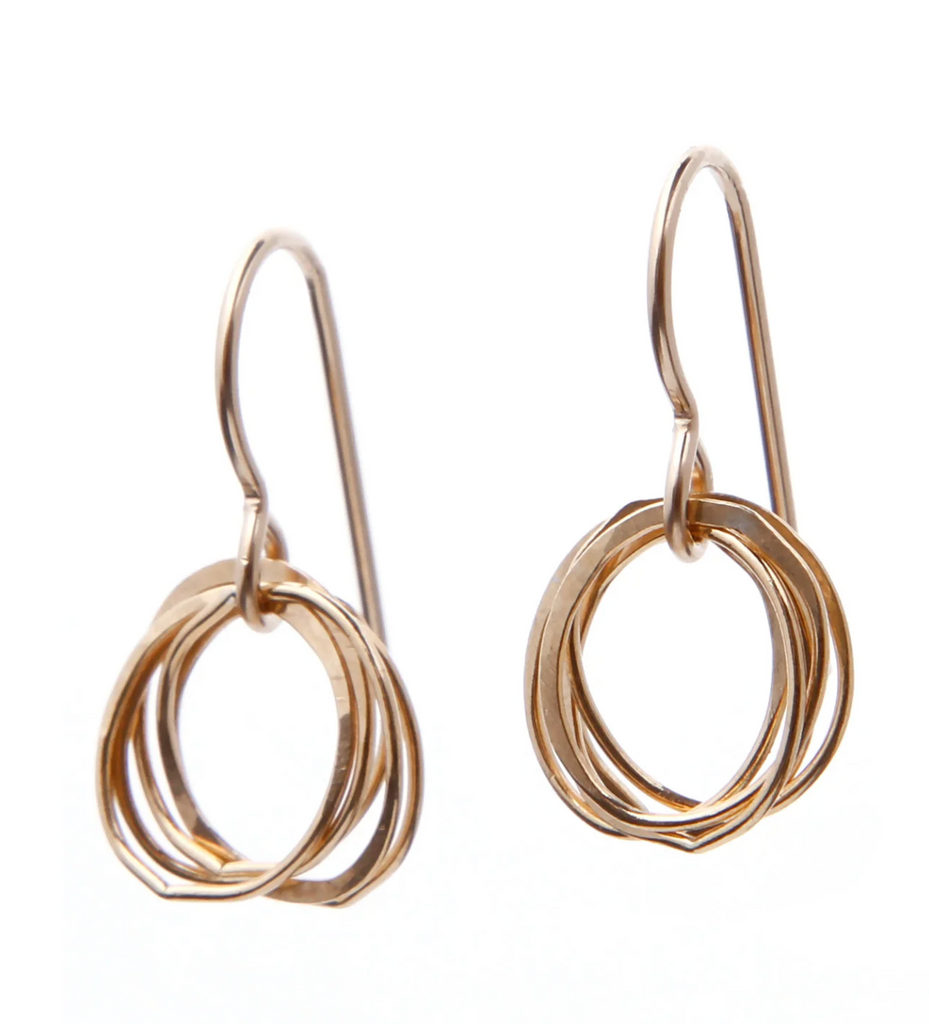 Five connected rings of lightweight, half-hammered sterling silver or gold fill hang on a simple French wire.