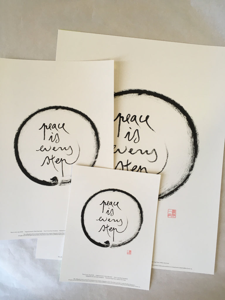 "Peace is every step” is a print of one of many original calligraphies painted by the late Thich Nhat Hanh for Lion's Roar; they are offered here, with his blessing, as a way to support the dharma. Proceeds from the sale of the prints are shared with Thich Nhat Hanh Foundation. Thay made the calligraphies during interviews with deputy editor Andrea Miller and editor-in-chief Melvin McLeod in the early 2000s. It is a delight to be able to share them with others.