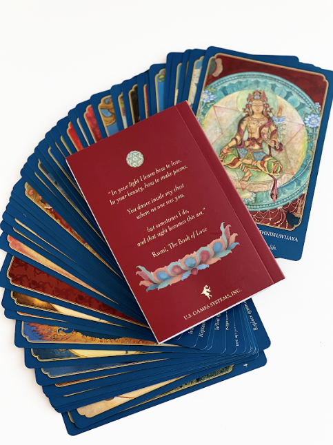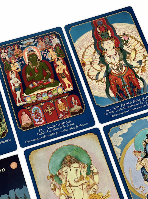 Buddha Wisdom, Shakti Power deck & book set presents sacred figures from the Buddhist and Hindu pantheon of deities and demons to help us with our earthly challenges. The colorful cards were created from paintings done in the beautifully detailed style of ancient Asian thangka artwork. These complex images allow our minds to absorb the spiritual meaning and energy of the art. With their powerful messages, the 50 cards may be used for prayer and meditation work, as well as learning about Buddhist beliefs and practices. The set includes 50 cards and a 92-page illustrated guidebook.