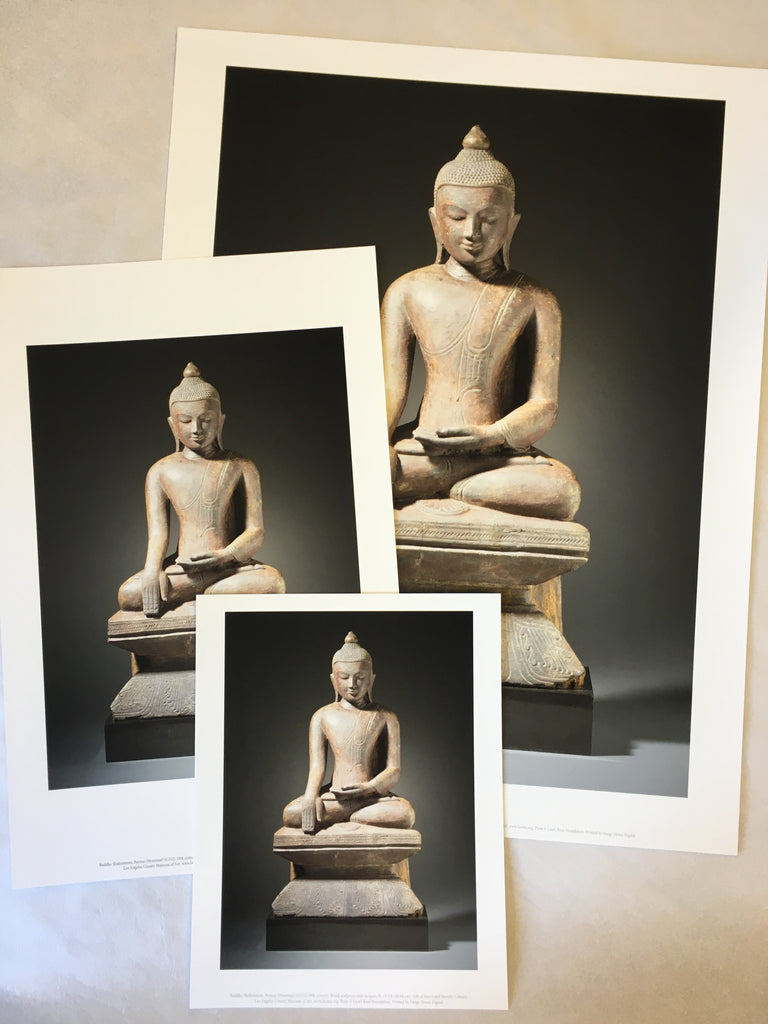 The sculpture from which this print derives comes from the Los Angeles County Museum of Art’s renowned South and Southeast Asian holdings. The sculpture is wood with lacquer and dates from 18th century Burma (Myanmar).