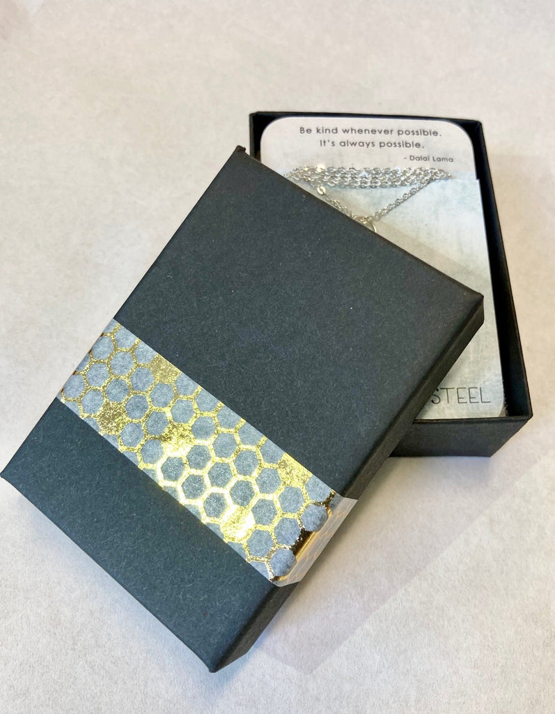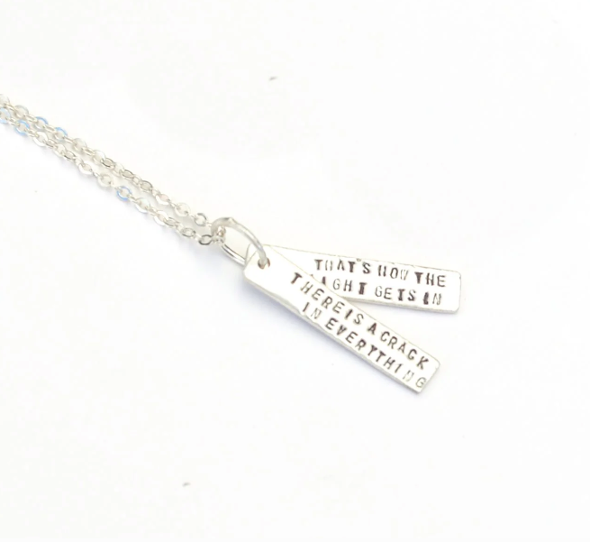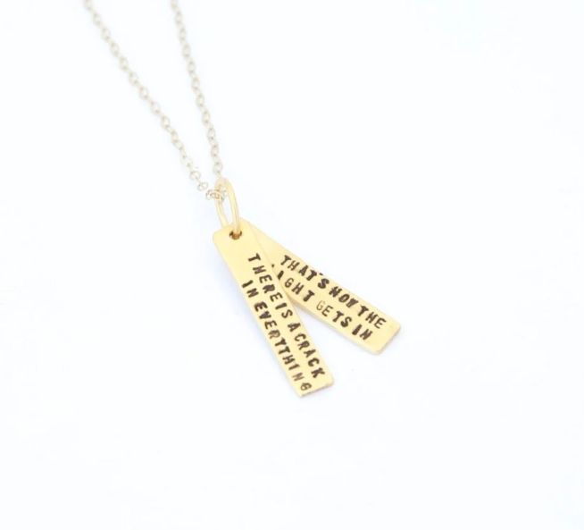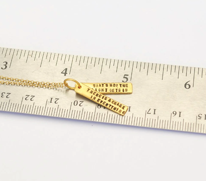 A quote. A mantra. Part of Chocolate and Steel's Quote Jewelry collection these words are captured on a set of two embossed gold vermeil or sterling silver bars in simple and stylish necklaces, a lovely and understated way to keep wisdom close at hand.