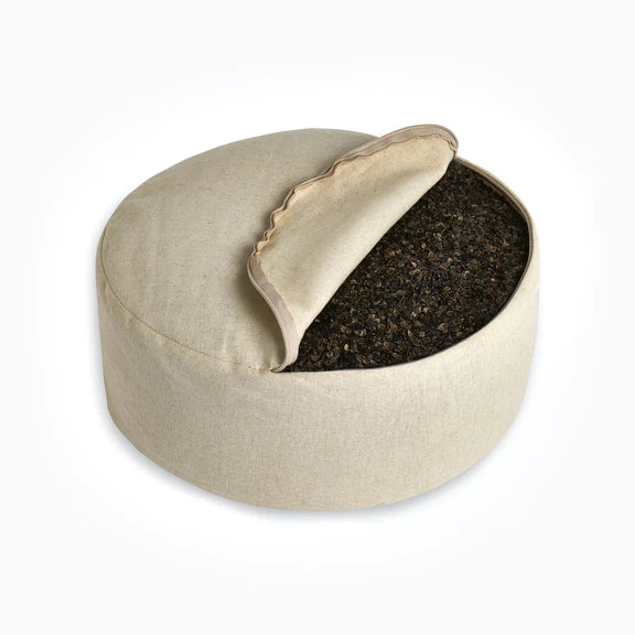 The zafu round cushion's supportive GOTS-certified organic buckwheat hulls conform perfectly to your individual shape bringing both stability and softness to your spine and seat. The more the cushion adapts to your seat the more support it offers to your spine. All materials in the Zafu cushion are plant-derived, biodegradable, easy to clean, and wonderfully breathable.