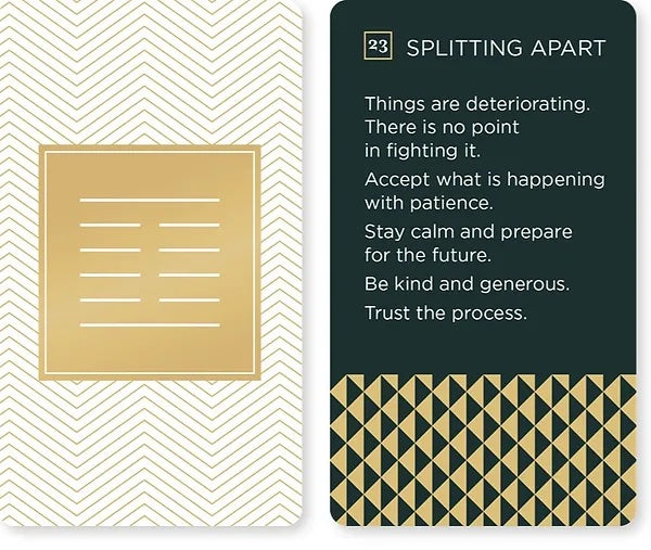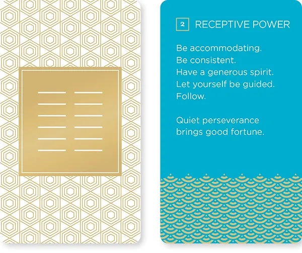 This artful, thoughtfully-conceived card deck presents the I Ching as a contemporary guide and oracle, answering questions like: How can I be my best self in any situation? How do I handle a tough conversation with my partner or co-worker? How do I find a fulfilling career?