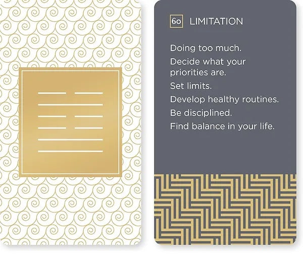- A 100-page color guidebook with information on the I Ching and detailed explanations for each card